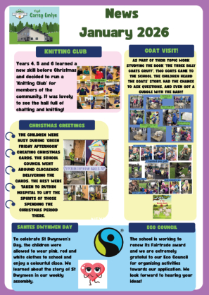 We update our Instagram page weekly @ysgolcarregemlyn. We share a weekly newsletter with our parents to share news of